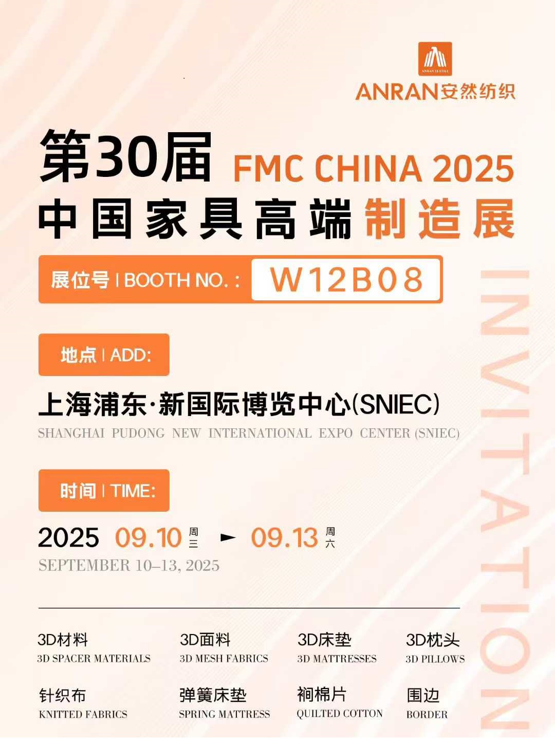 More >福建省安然紡織科技有限公司成立于2012年,注冊資金5888萬元,廠區(qū)占地200畝,建筑面積20萬平米,現(xiàn)有員工500多人,主要致力于3D材料、3D面料、針織提花面料、床墊、枕頭、軟床、沙發(fā)、餐桌椅等系列產(chǎn)品的研發(fā)、生產(chǎn)及銷售,是一家擁有自營進出口權的國家高新技術企業(yè),產(chǎn)品遠銷國內(nèi)外。